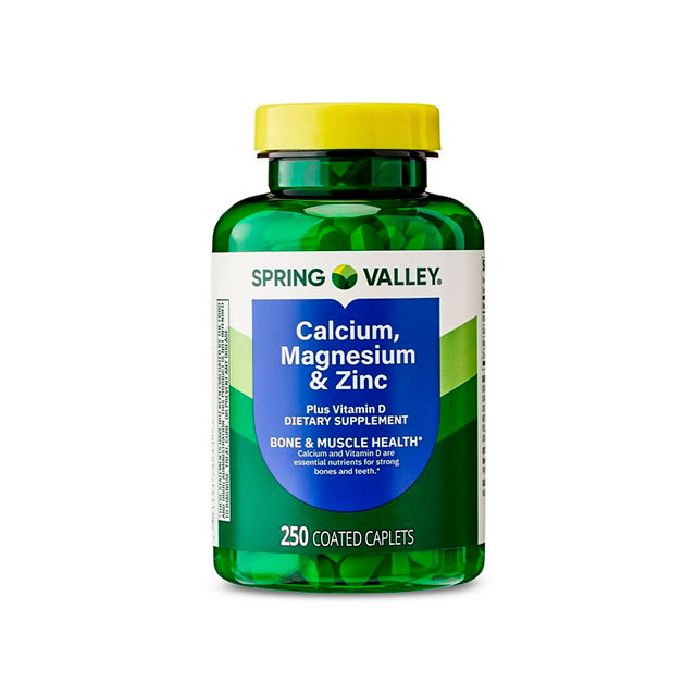 - Spring Valley Calcio, magnesio y zinc más vitamina D3 recubierto cápsulas, 250 unidades